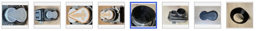 Accessories for Flexaret TLR cameras, caps, lens hood, medium format camera. Accessoires Flexaret, pare soleil, bouchon boitier
